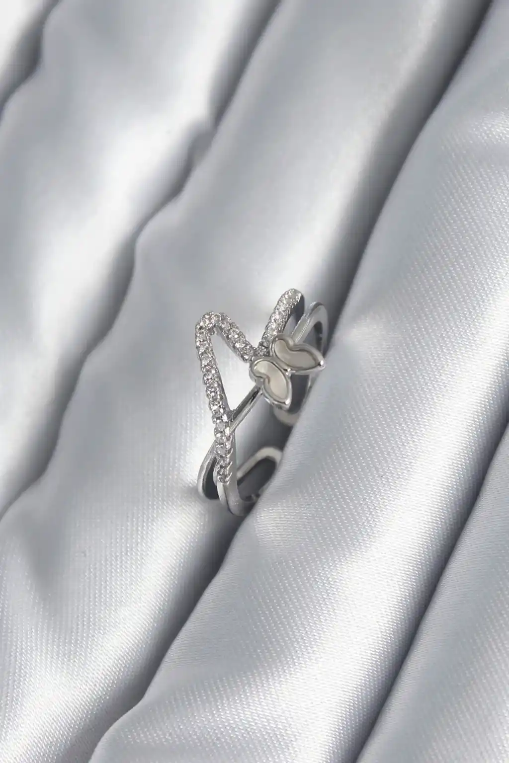 Pirinç Gümüş Renk Zirkon Taş Detay Kelebek Model Kadın Yüzük