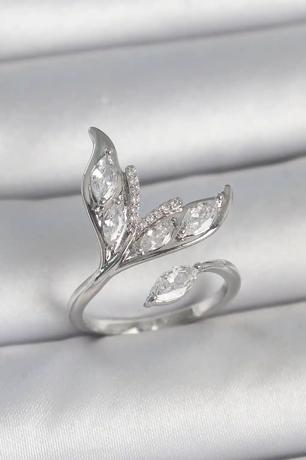 Pirinç Gümüş Renk Zirkon Taşlı Balık Kuyruğu Model Ayarlanabilir Kadın Yüzük