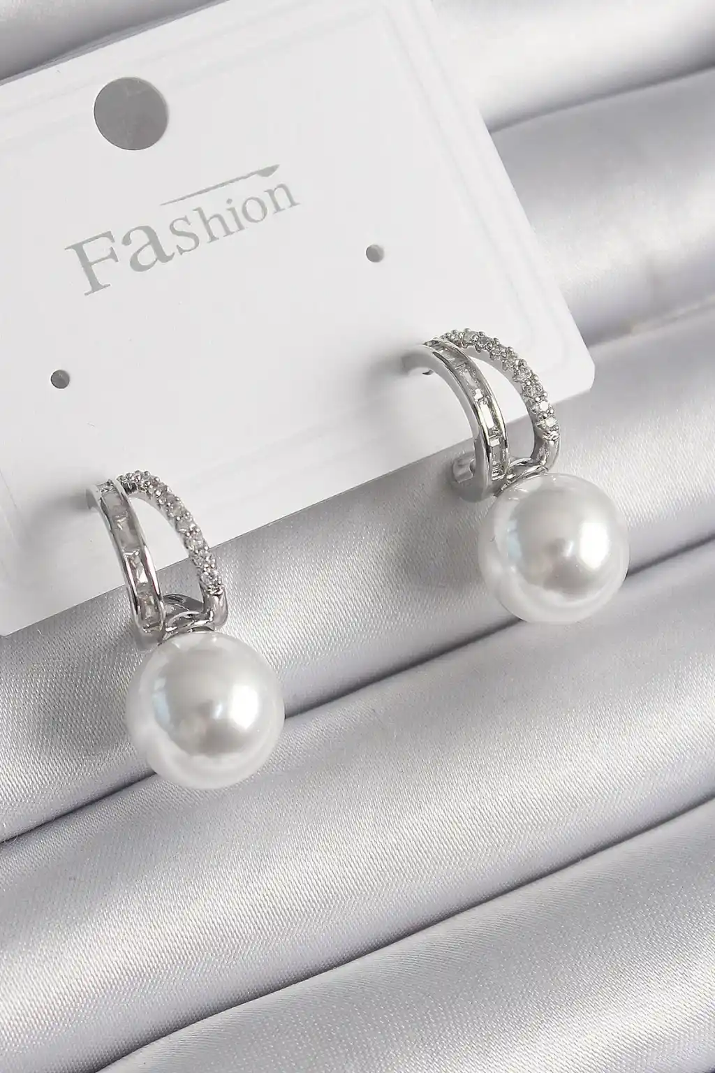 Pirinç Gümüş Renk Zirkon Taşlı Halka İnci Detay Kadın Küpe