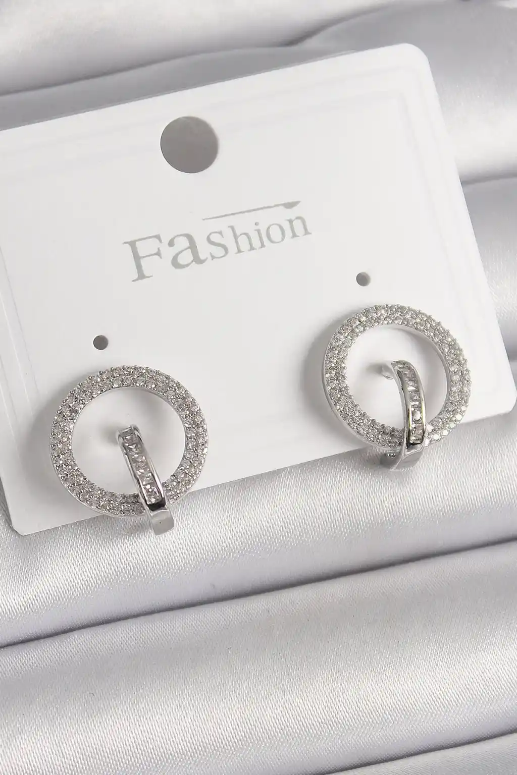 Pirinç Gümüş Renk Zirkon Taşlı Halka Model Kadın Küpe