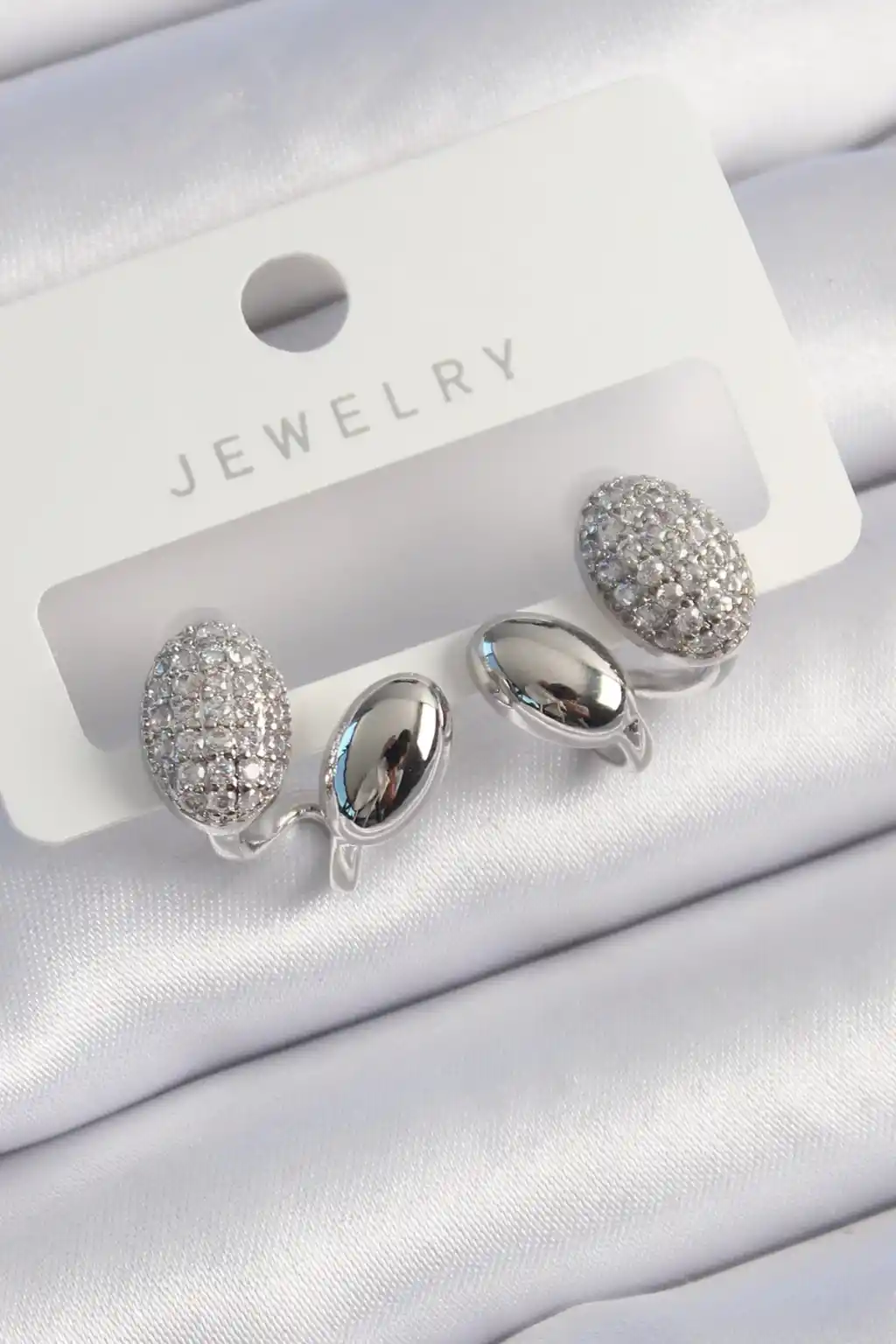 Pirinç Gümüş Renk Zirkon Taşlı Kadın Küpe