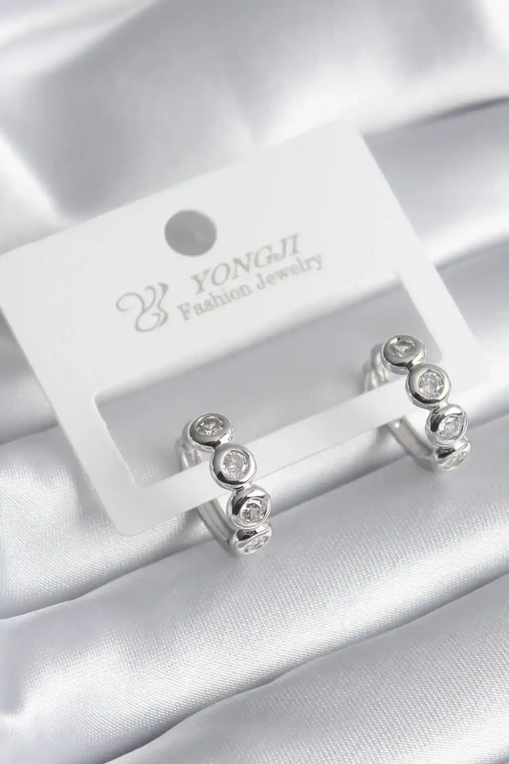 Pirinç Gümüş Renk Zirkon Taşlı Kadın Küpe