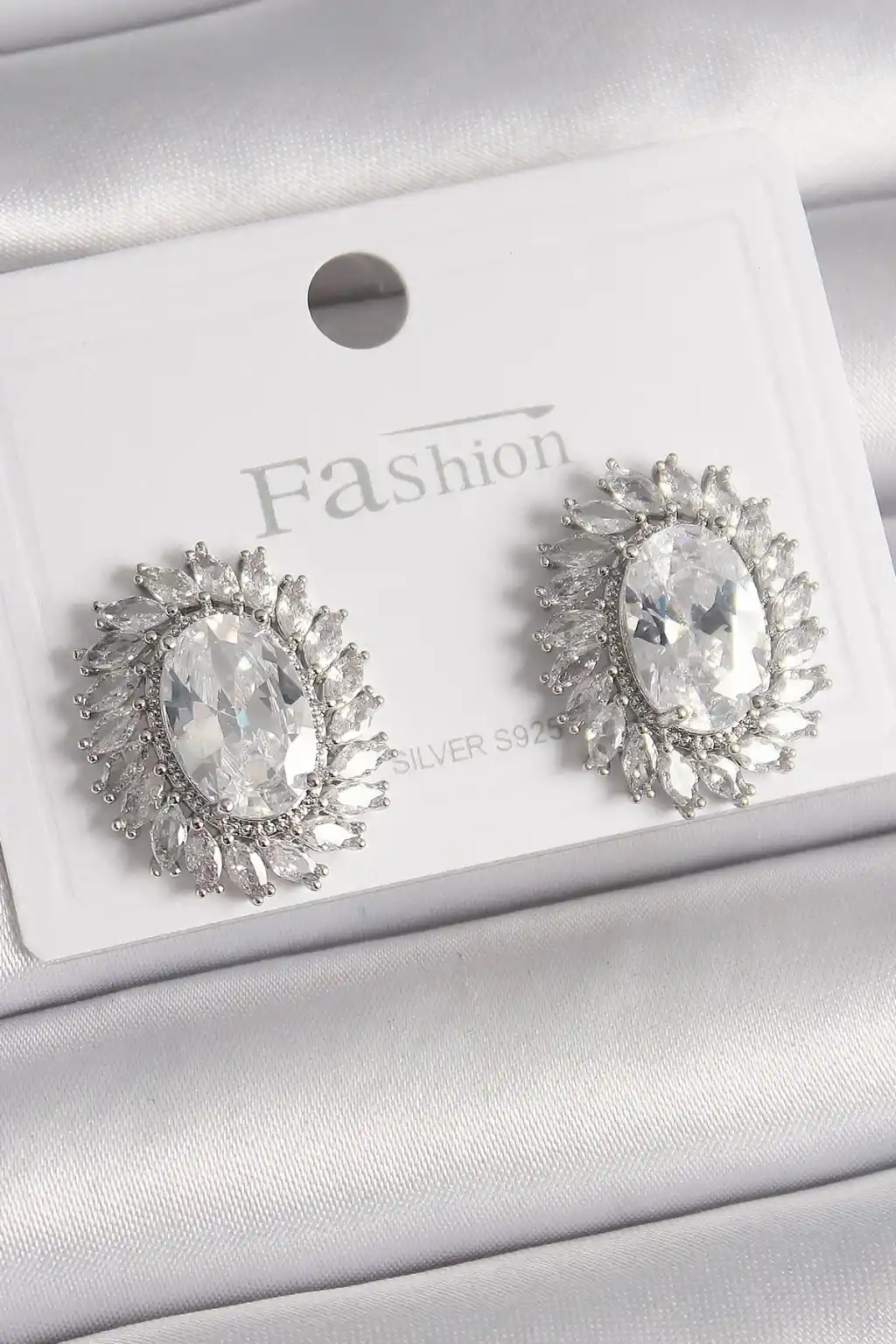 Pirinç Gümüş Renk Zirkon Taşlı Kadın Küpe