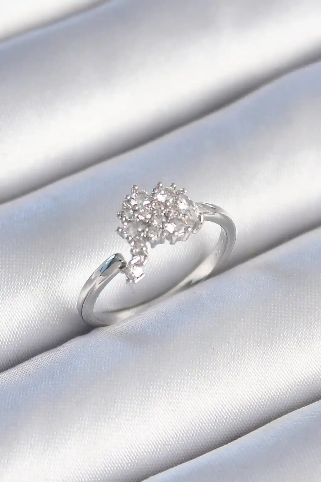 Pirinç Gümüş Renk Zirkon Taşlı Kadın Yüzük