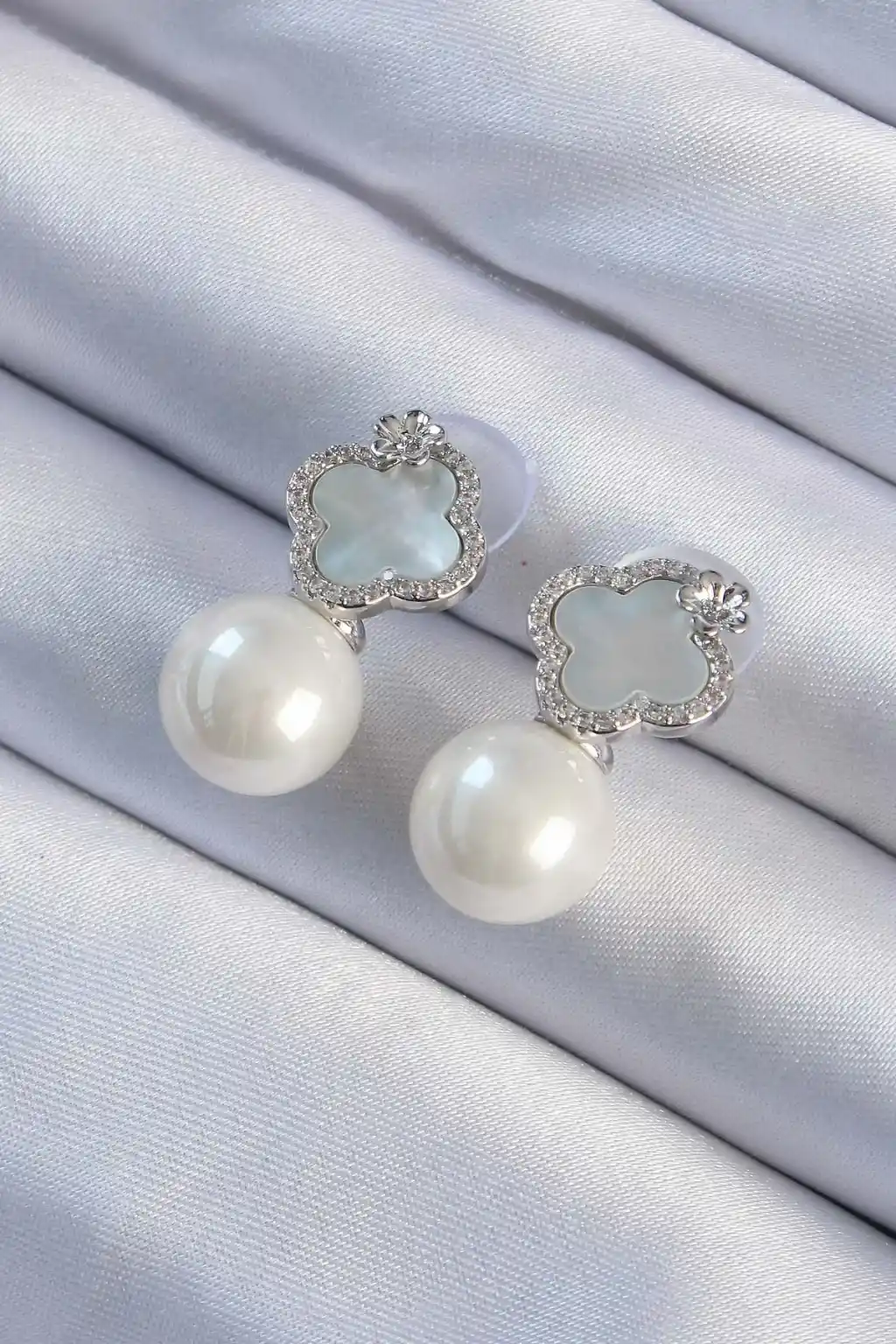 Pirinç Gümüş Renk Zirkon Taşlı Minimal Çiçek Tasarımlı Kadın Küpe