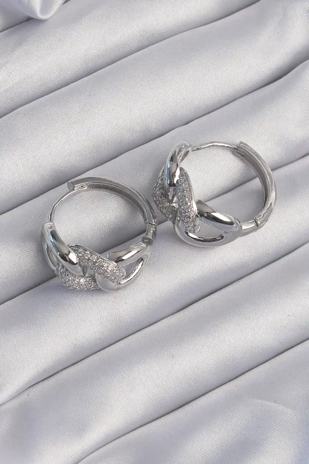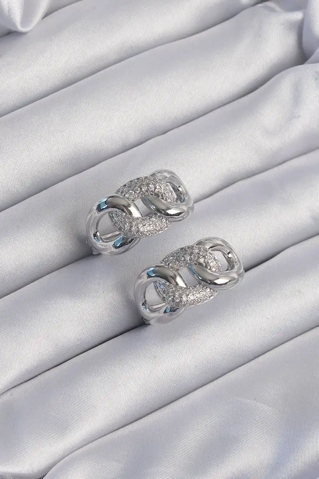 Pirinç Gümüş Renk Zirkon Taşlı Samanyolu Küpe