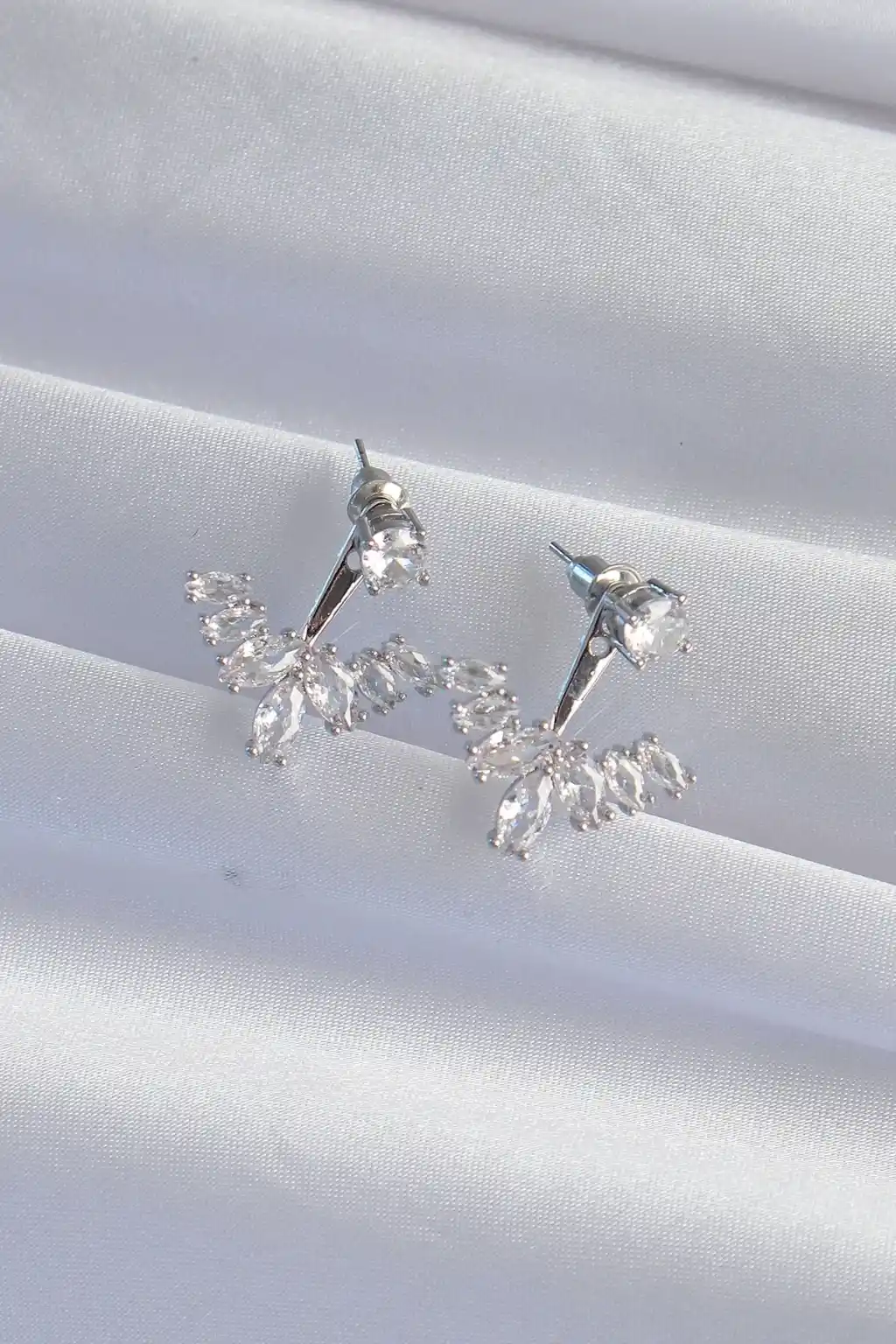 Pirinç Gümüş Renk Zirkon Taşlı V Model Küpe