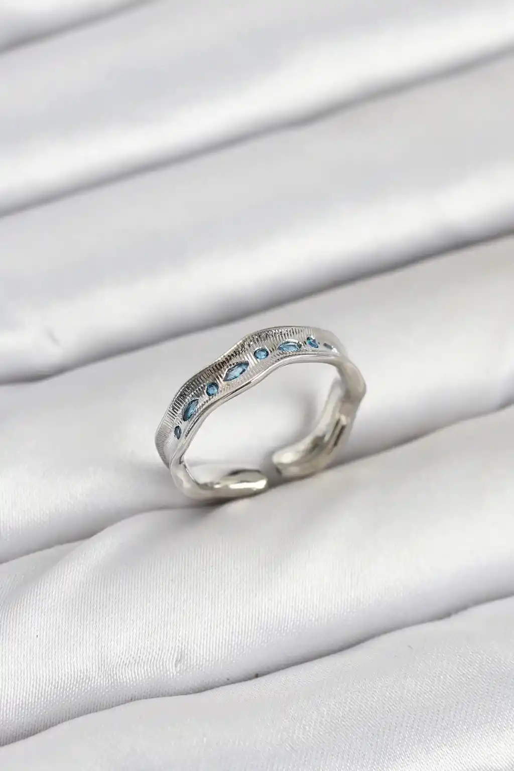 Pirinç Gümüş Renk Zirkon Taşlı Vintage Kadın Yüzük