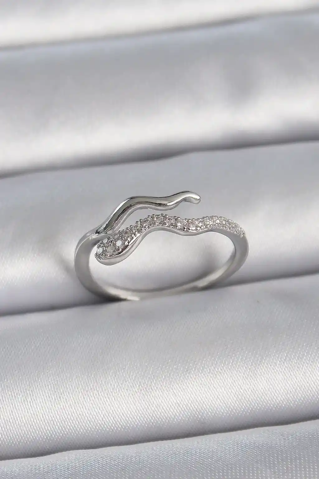 Pirinç Gümüş Renk Zirkon Taşlı Yılan Ayarlanabilir Model Kadın Yüzük