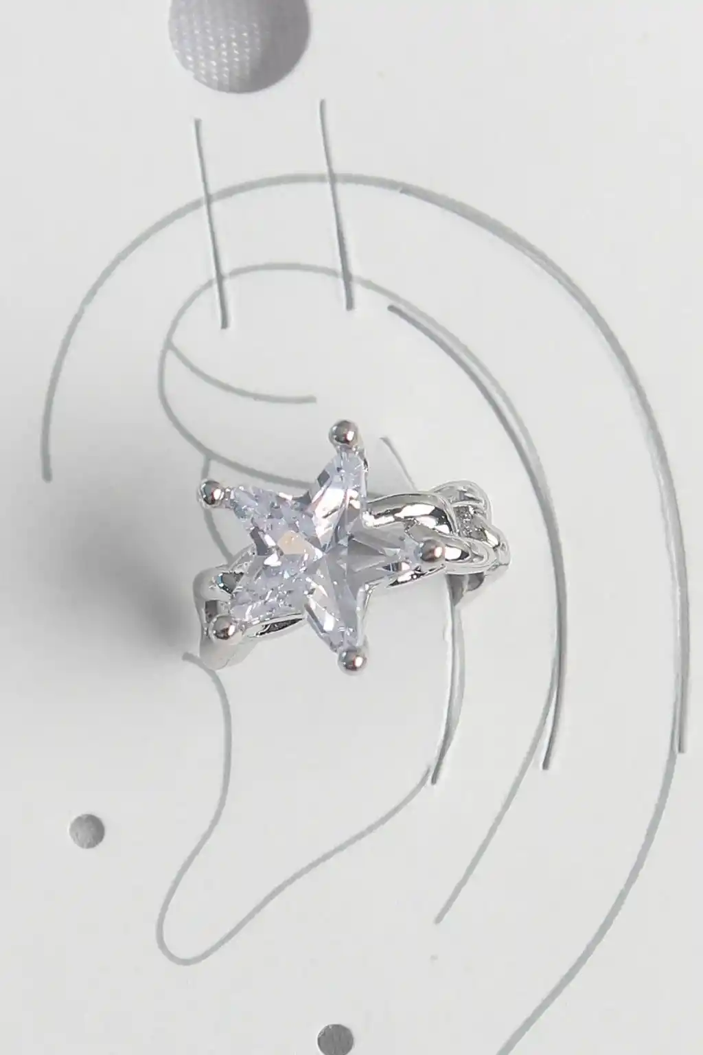 Pirinç Gümüş Renk Zirkon Taşlı Yıldız Model Kadın Kıkırdak Küpe
