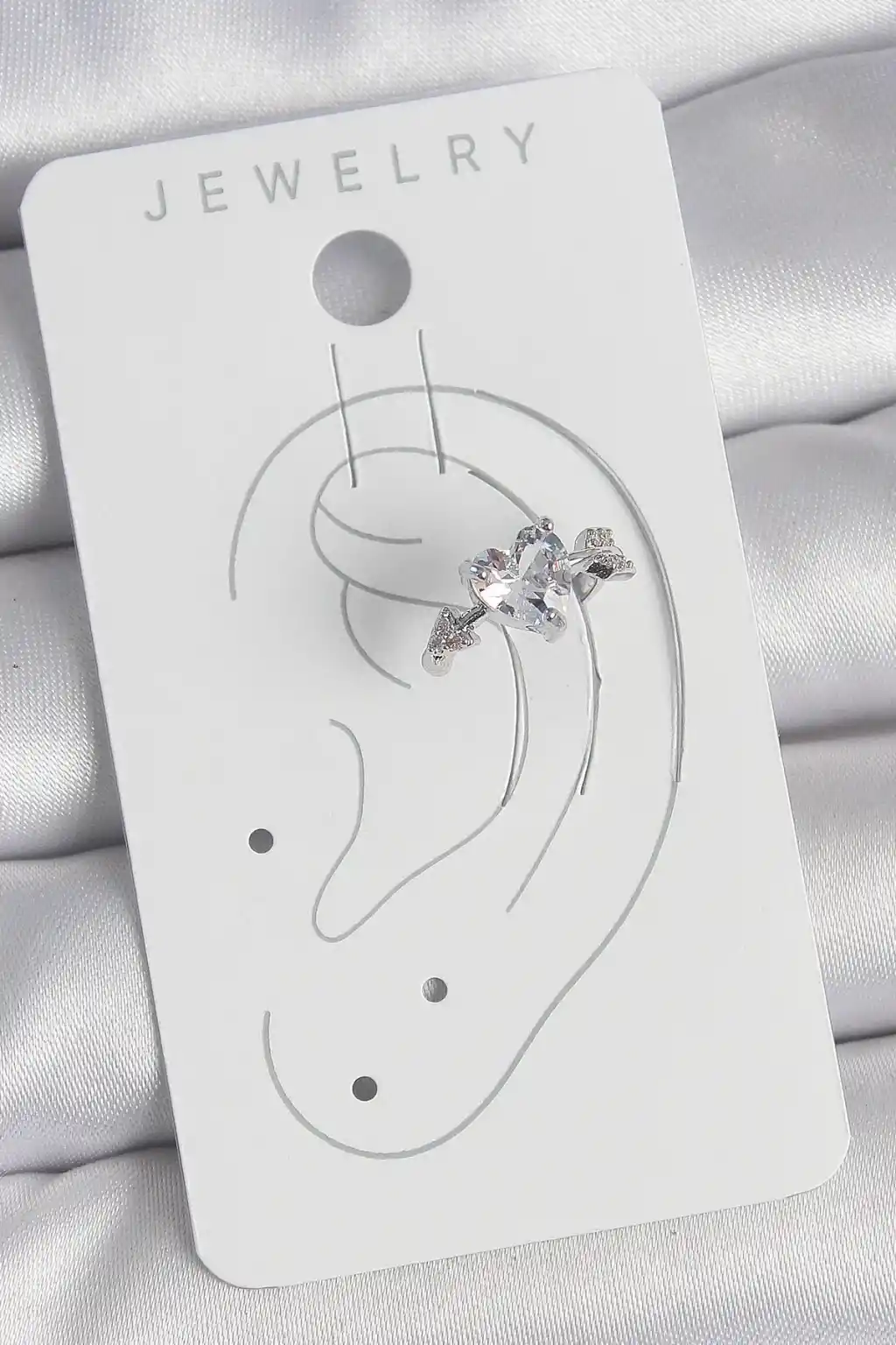Pirinç Gümüş Renk Zirkon Taşlı Yıldız Model Kadın Kıkırdak Küpe