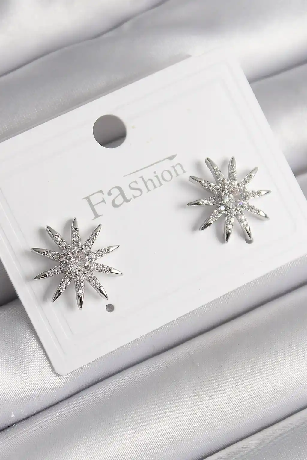 Pirinç Gümüş Renk Zirkon Taşlı Yıldız Model Kadın Küpe