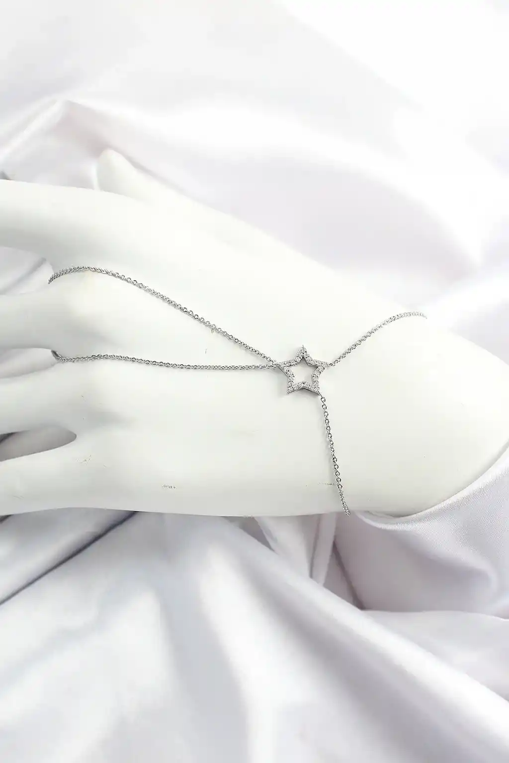 Pirinç Gümüş Renk Zirkon Taşlı Yıldız Model Şahmeran