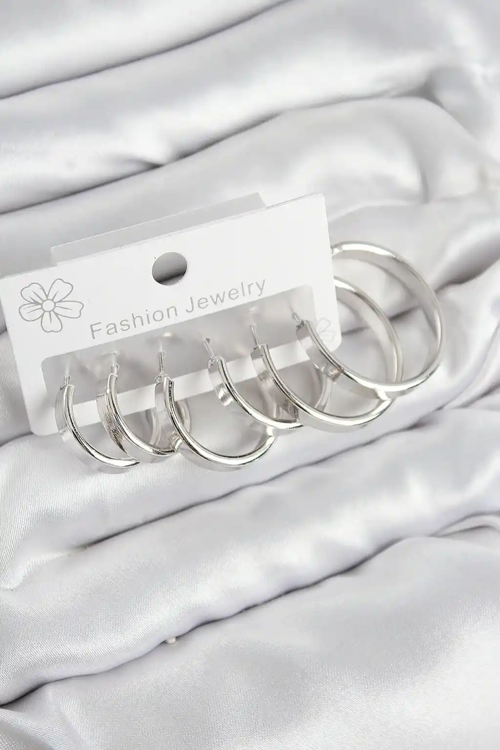 Pirinç Halka Model Gümüş Renk Kadın Set Küpe