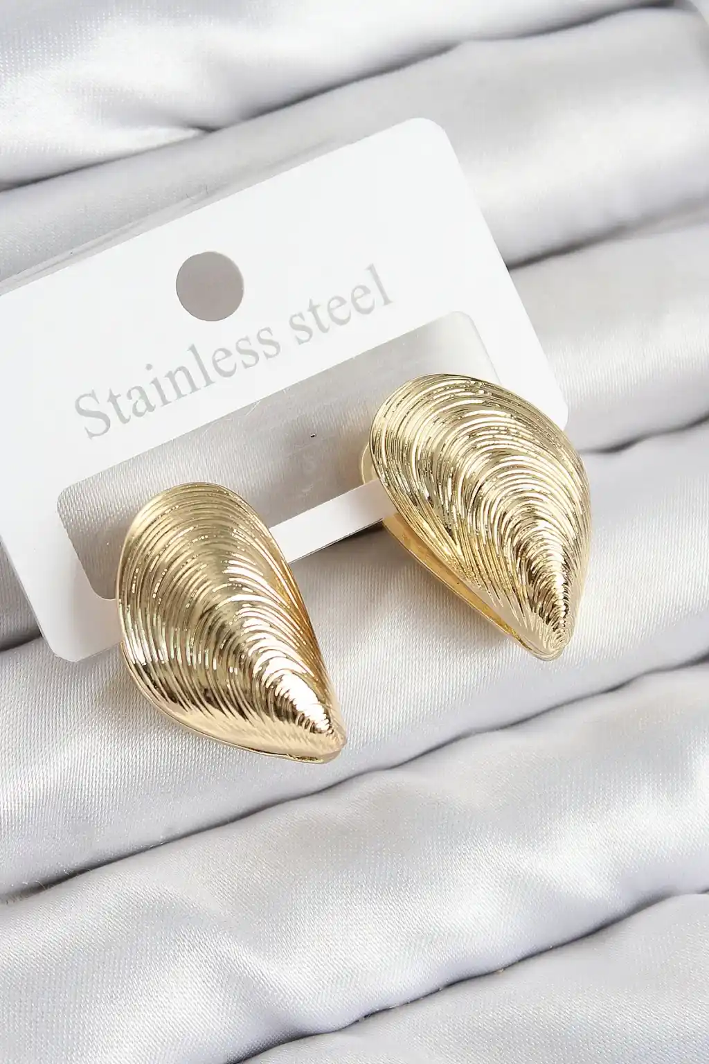 Pirinç İstiridye Model Gold Renk Kadın Küpe