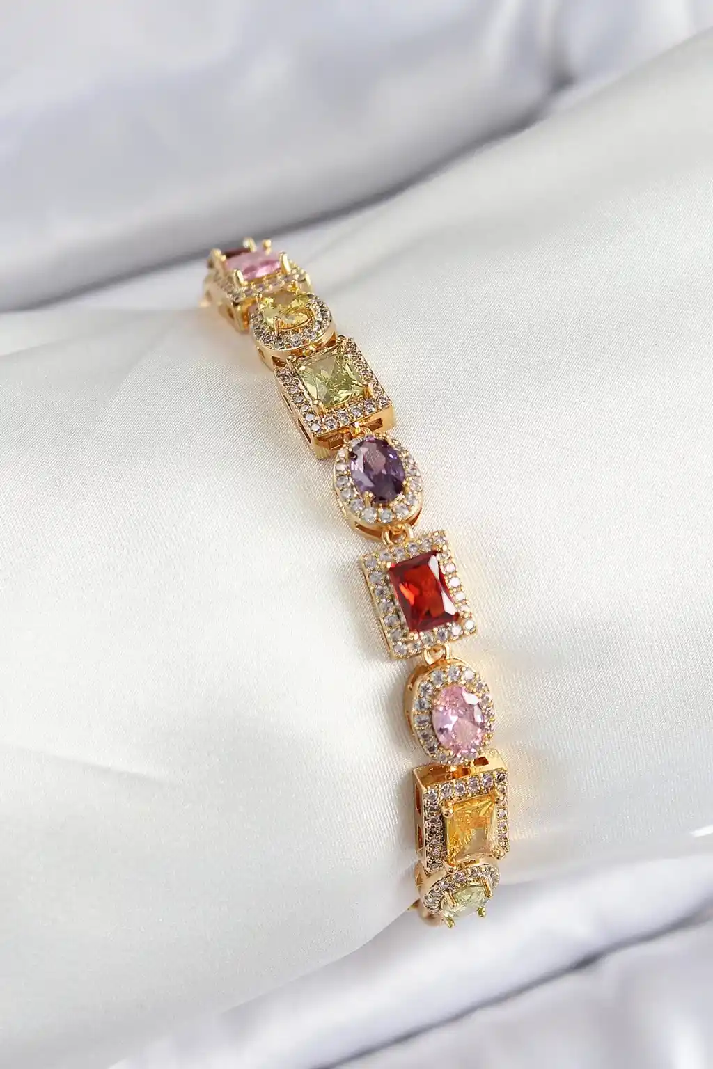 Pirinç Karışık Zirkon Taşlı Baget Model Gold Renk VIP Seri Kadın Bileklik
