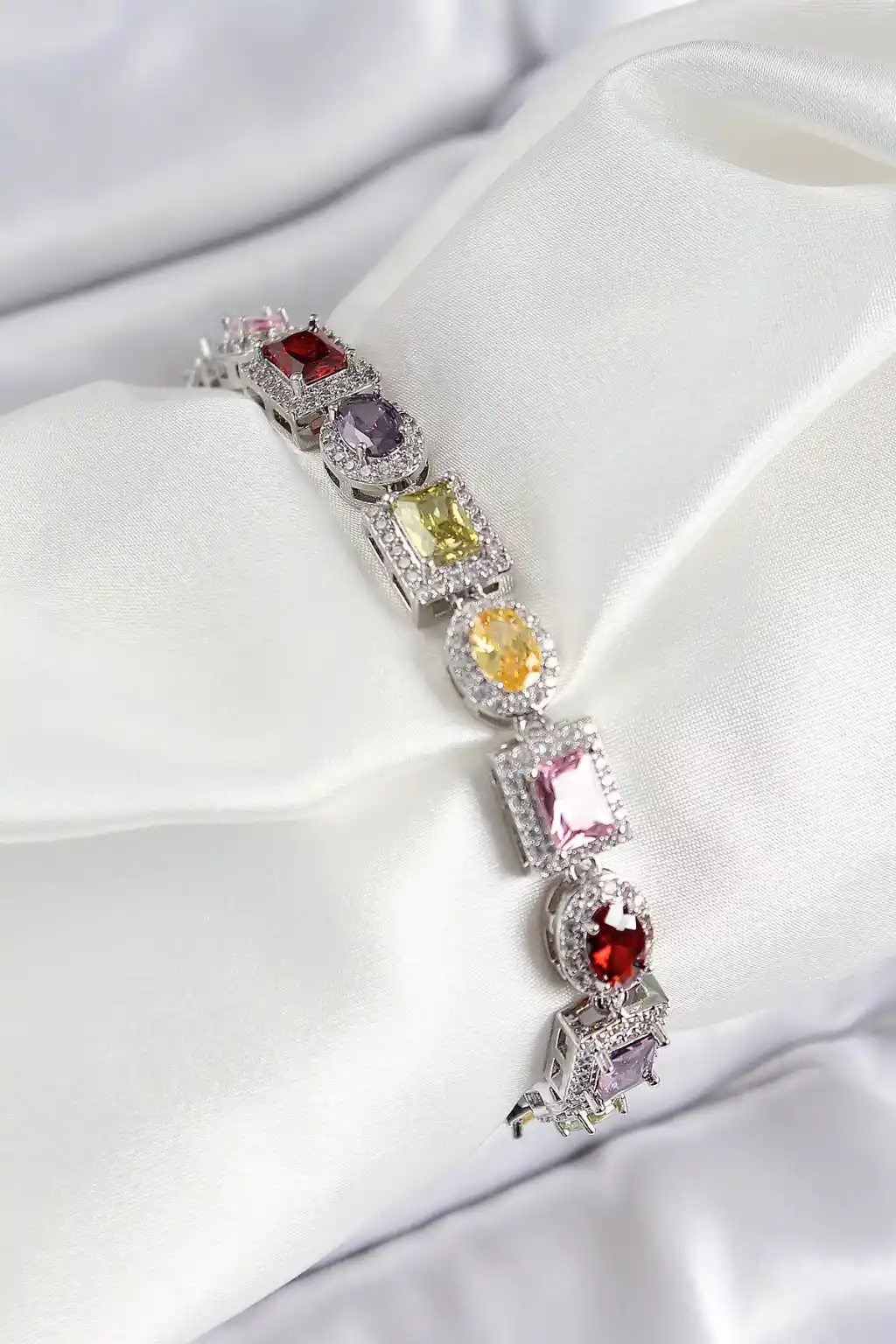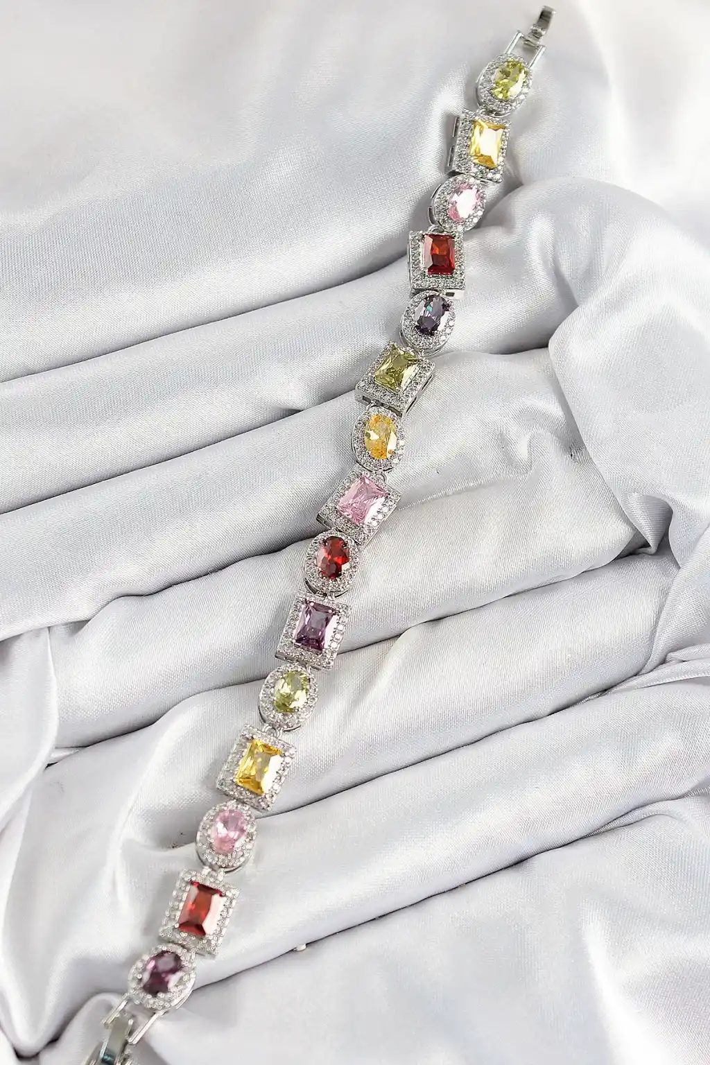 Pirinç Karışık Zirkon Taşlı Baget Model Gümüş Renk VIP Seri Kadın Bileklik