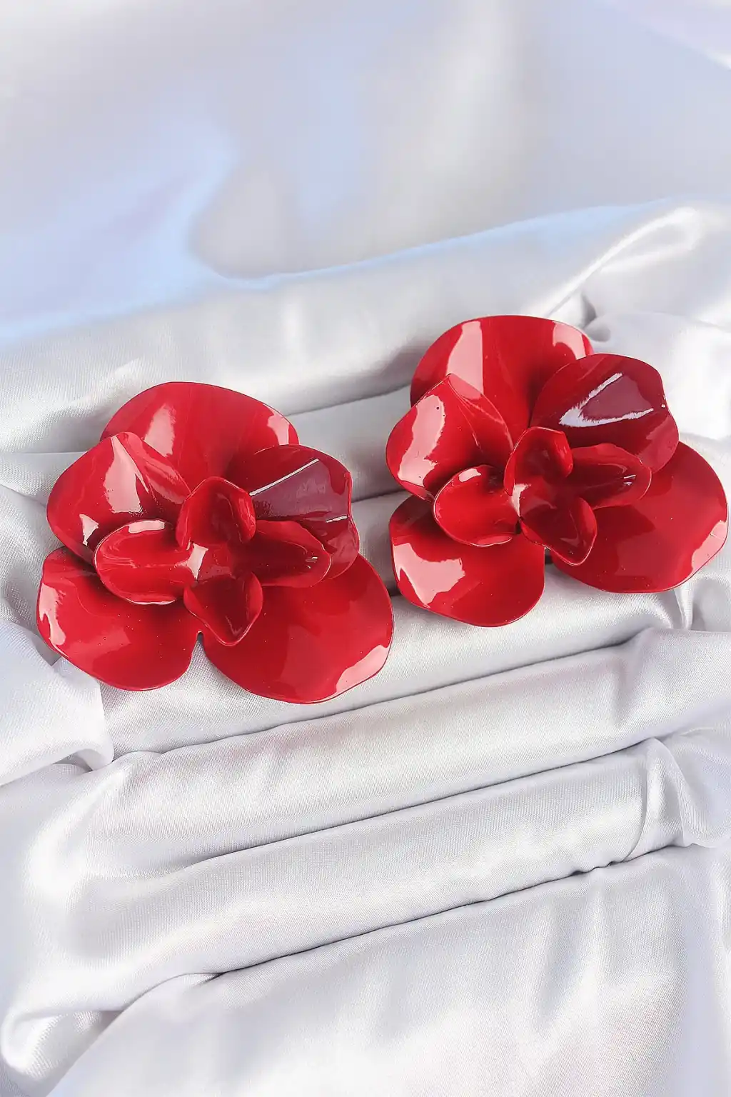 Pirinç Kırmızı Renk Gül Model Kadın Küpe