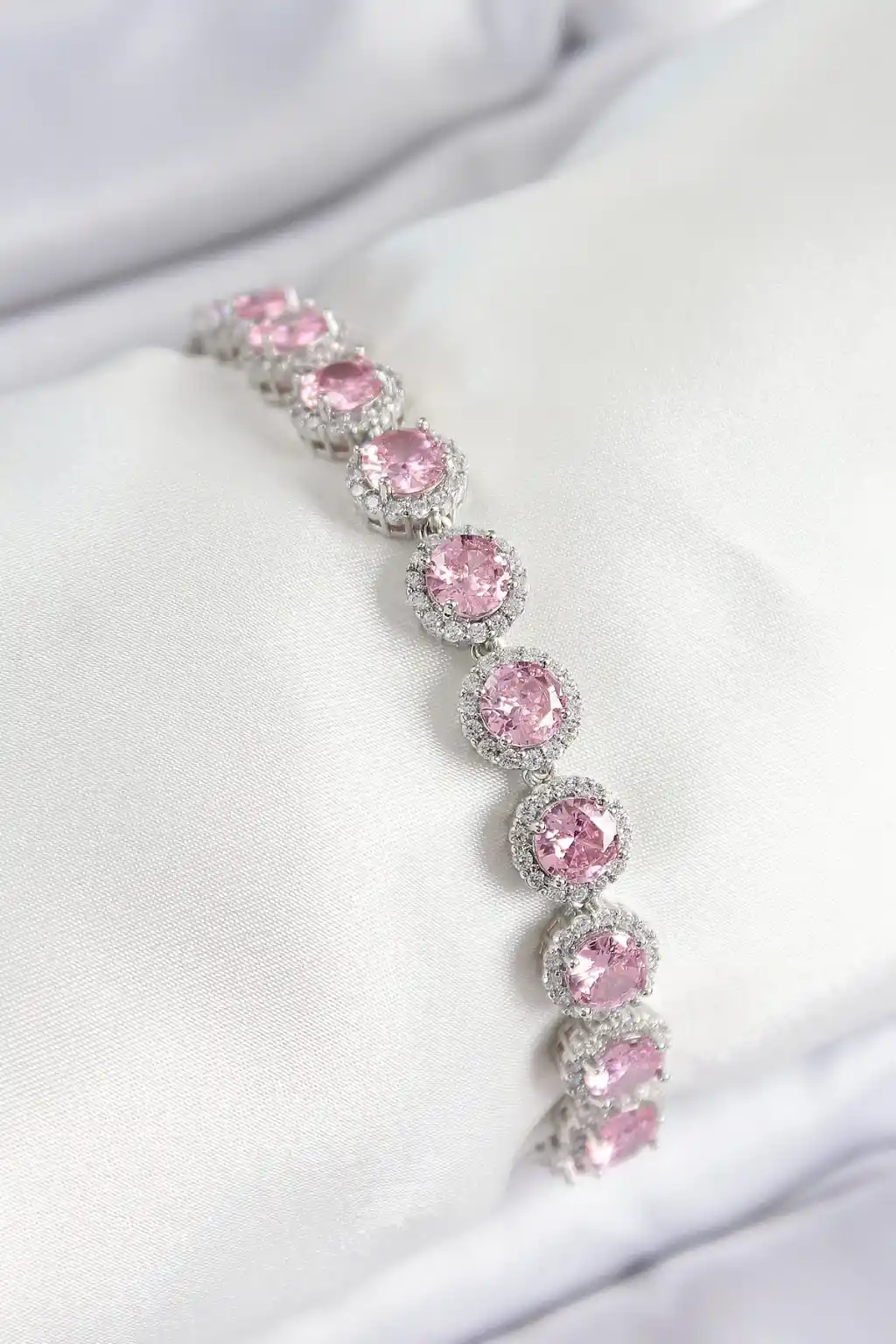 Pirinç Pembe Zirkon Taşlı Daire Baget Model Gümüş Renk VIP Seri Kadın Bileklik