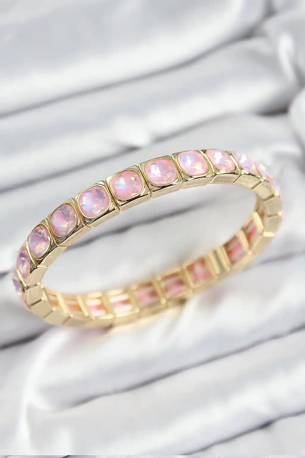 Pirinç Pembe Zirkon Taşlı Kare Model Gold Renk Lastikli Kadın Bileklik