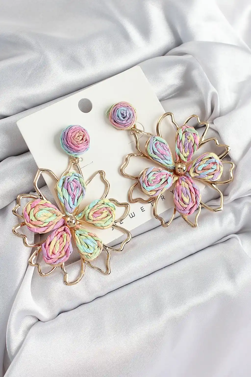 Pirinç Rainbow Çiçek Model Gold Renk Kadın Hasır Küpe