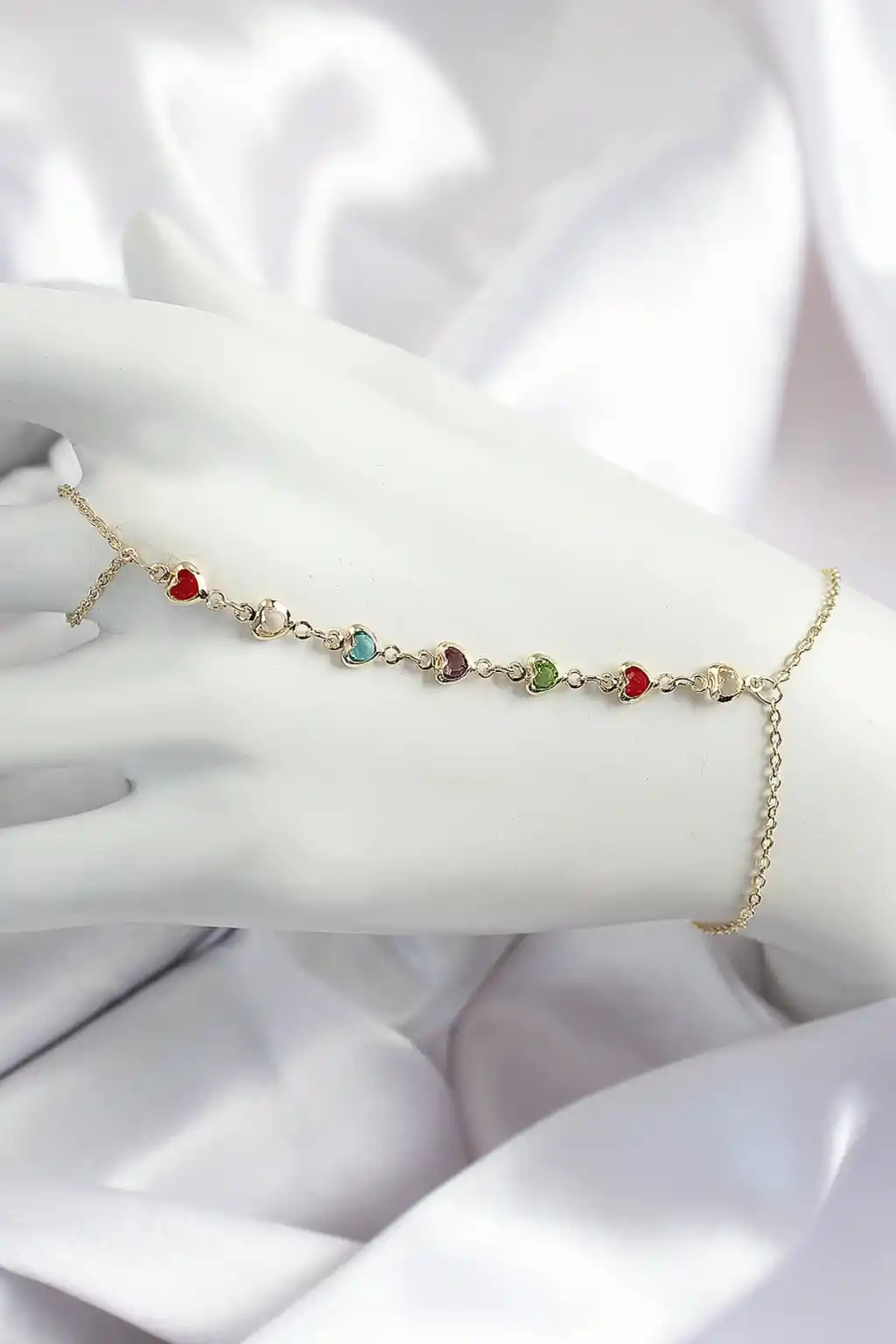 Pirinç Renkli Kalpli Zirkon Taşlı Y Model Gold Renk Kadın Şahmeran
