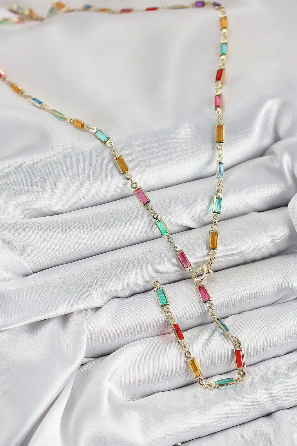 Pirinç Renkli Zirkon Taşlı Dikdörtgen Model Gold Renk Kadın Y Kolye
