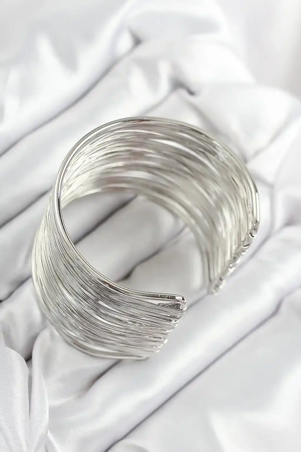 Pirinç Tel Sarma Model Gümüş Renk Kadın Bileklilk