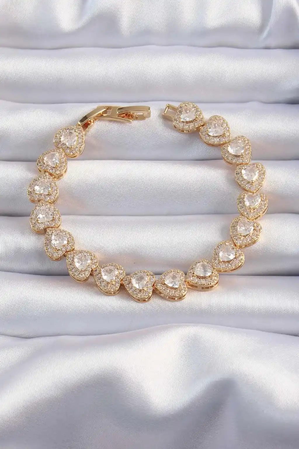Pirinç Vip Seri Gold Renk Zirkon Taşlı Kalp Model Bileklik