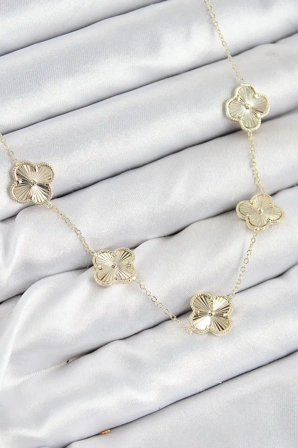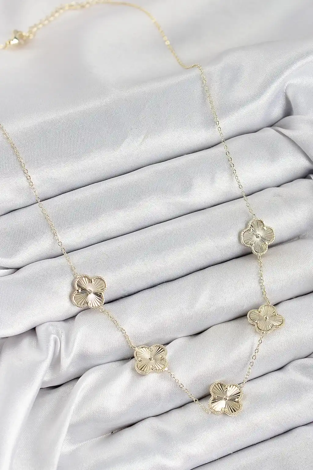 Pirinç VIP Yonca Model Gold Renk Kadın Kolye