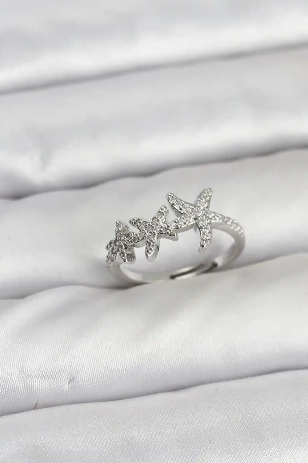 Pirinç Yıldız Model Gümüş Renk Kadın Yüzük