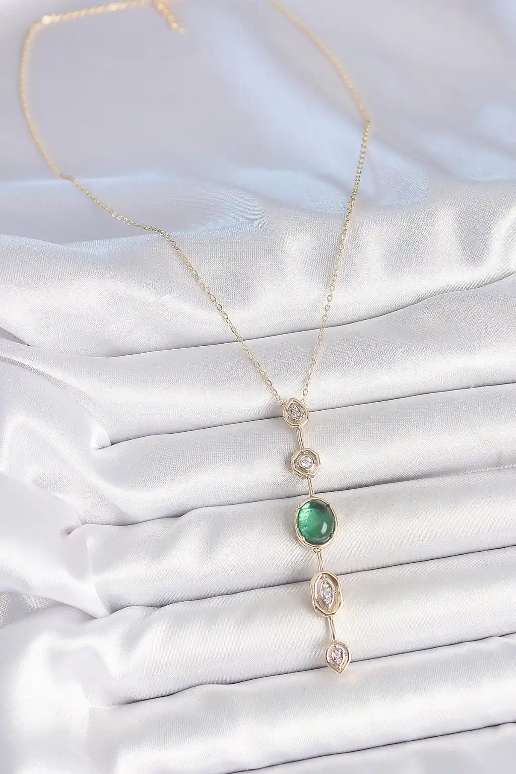 Pirinç Zincir Zümrüt Yeşil Gold Renk Zirkon Taşlı Y Kolye