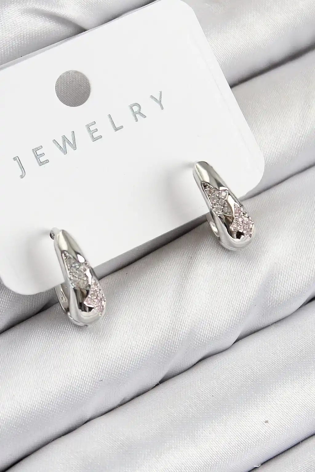Pirinç Zirkon Taş Desenli Model Gümüş Renk Kadın Küpe