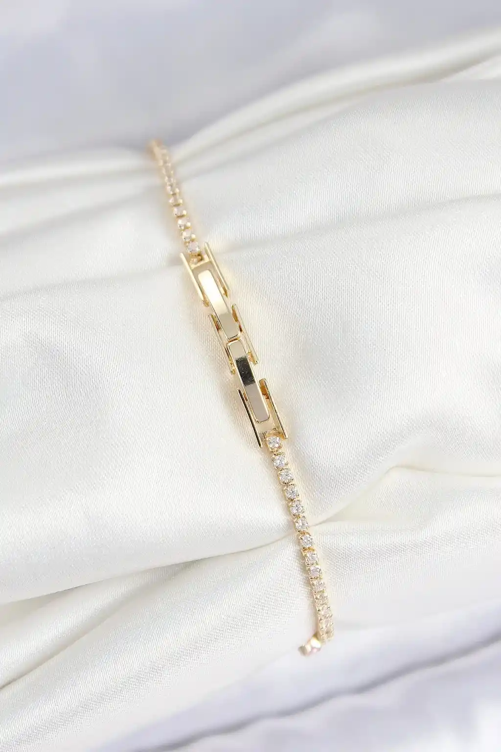 Pirinç Zirkon Taşlı Asorti Model Gold Renk Kadın Bilekilk