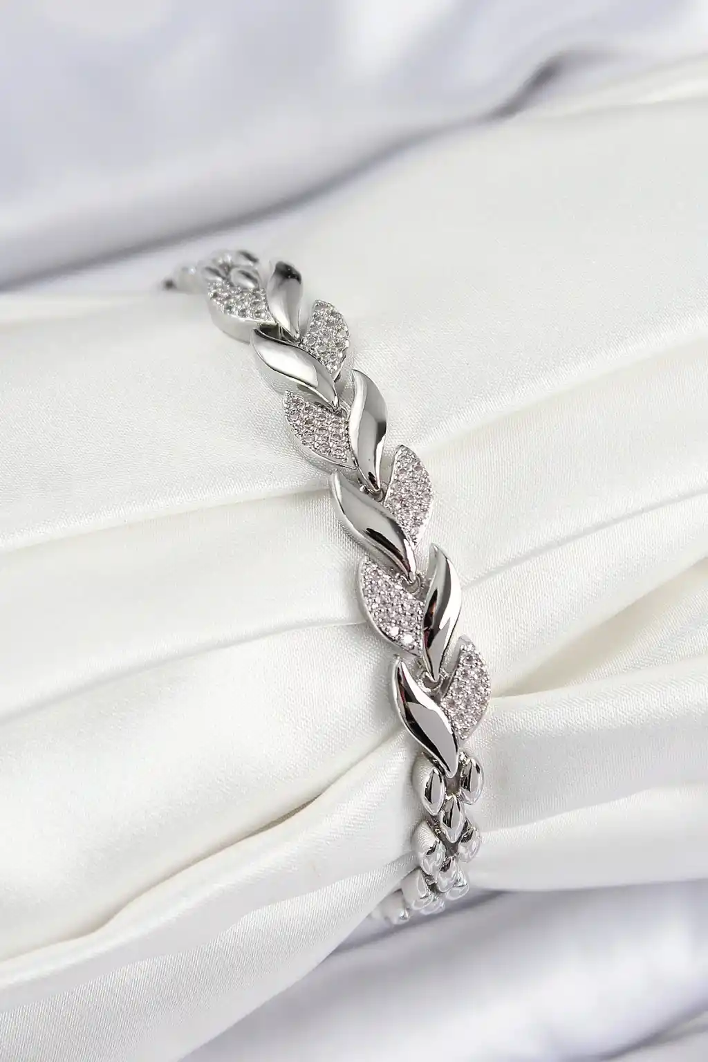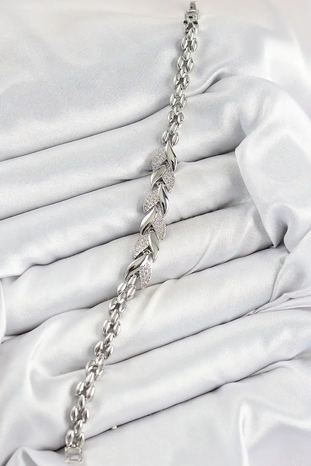Pirinç Zirkon Taşlı Balık Kuyruğu Model Gümüş Renk Kadın Bileklik