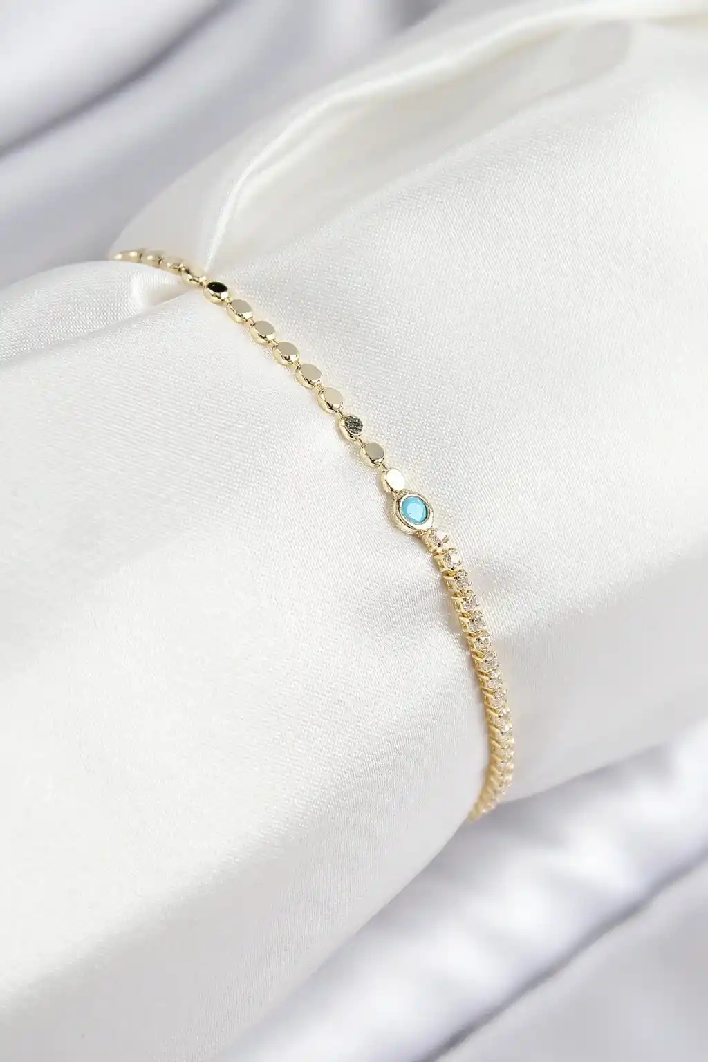 Pirinç Zirkon Taşlı Boncuk Model Ezme Zincir Gold Renk Kadın Bileklik