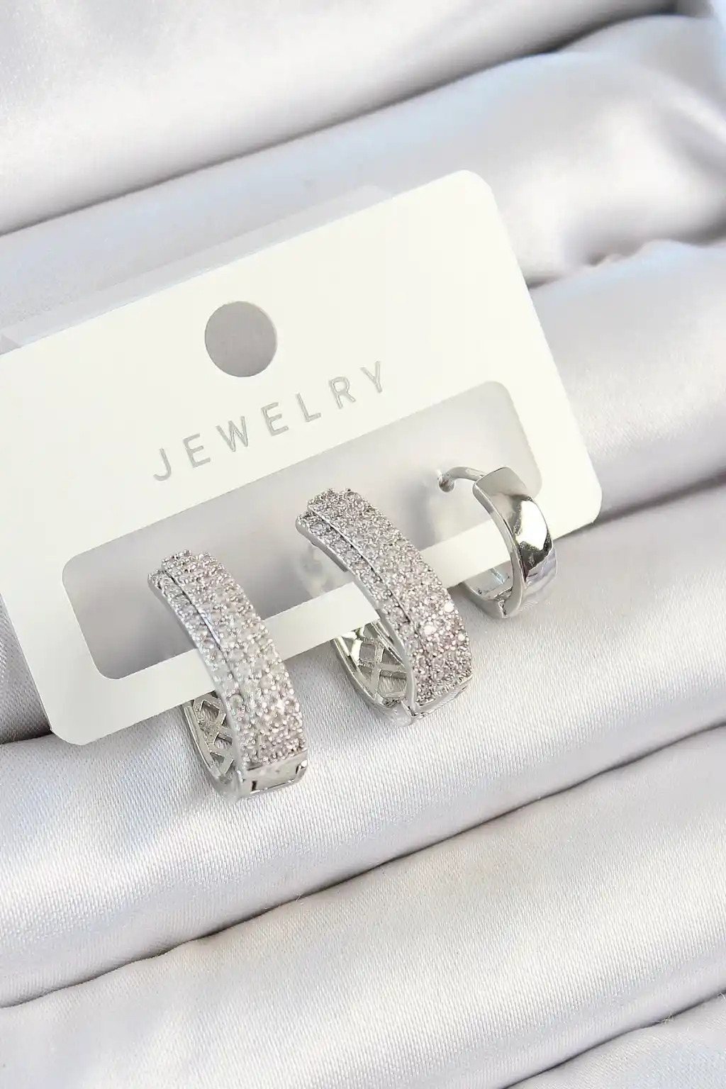 Pirinç Zirkon Taşlı Damla Model Gümüş Renk 3'lü Çift Kadın Küpe Set