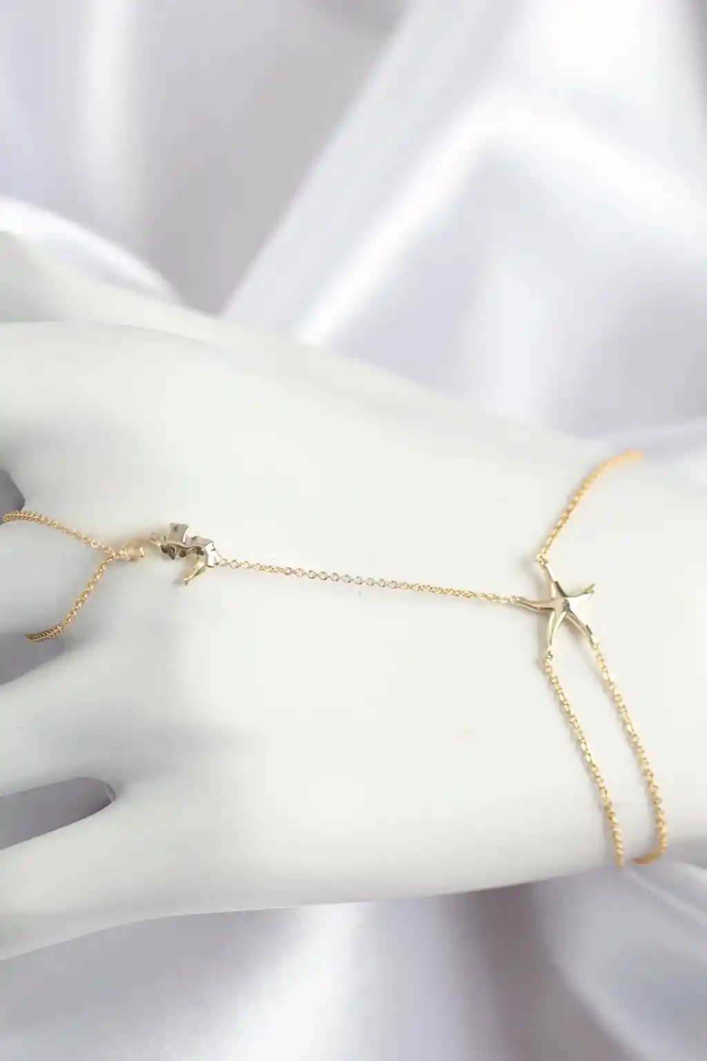 Pirinç Zirkon Taşlı Deniz Atı Ve Yıldız Model Gold Renk Şahmeran