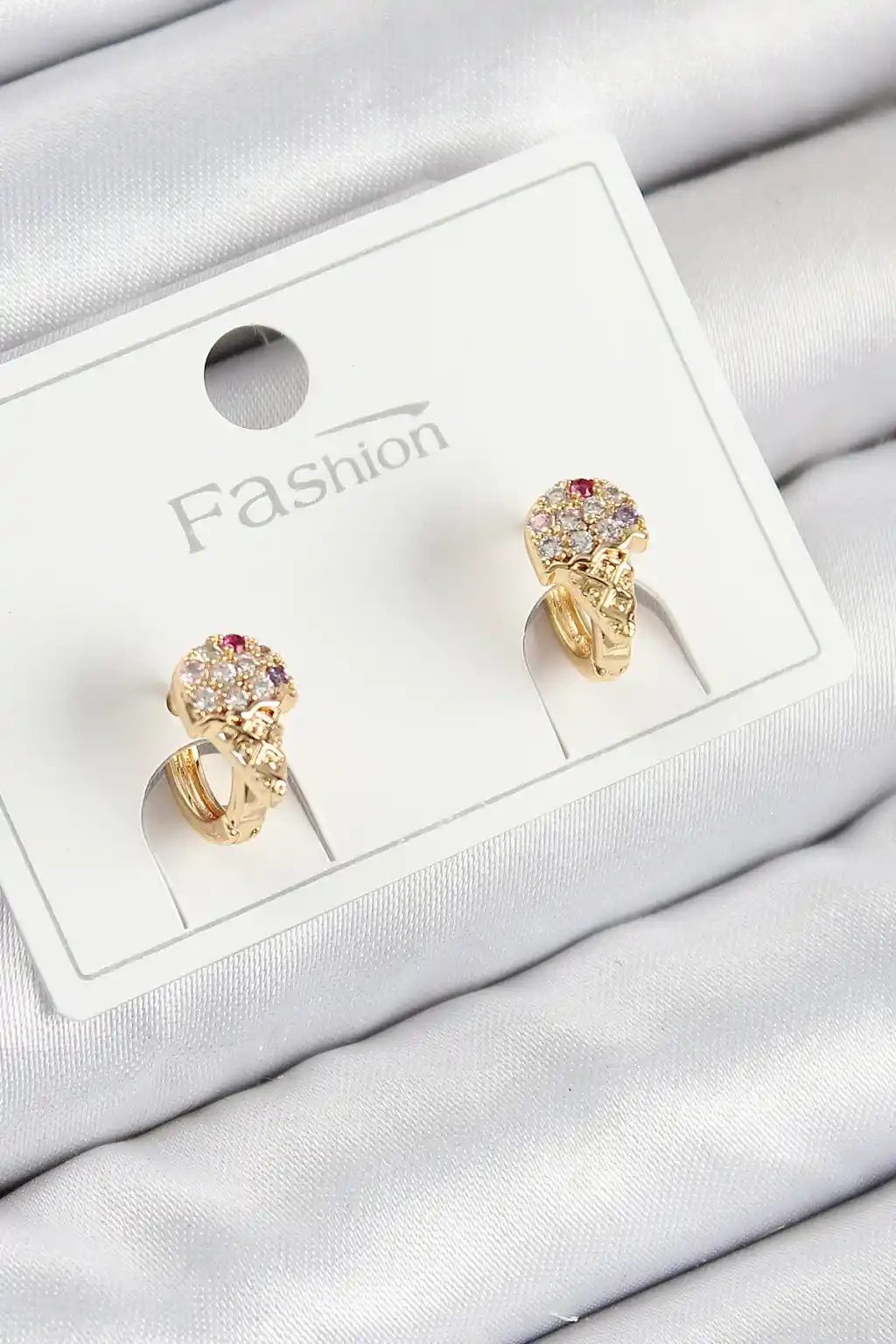 Pirinç Zirkon Taşlı Dondurma Model Gold Renk Çocuk Küpe