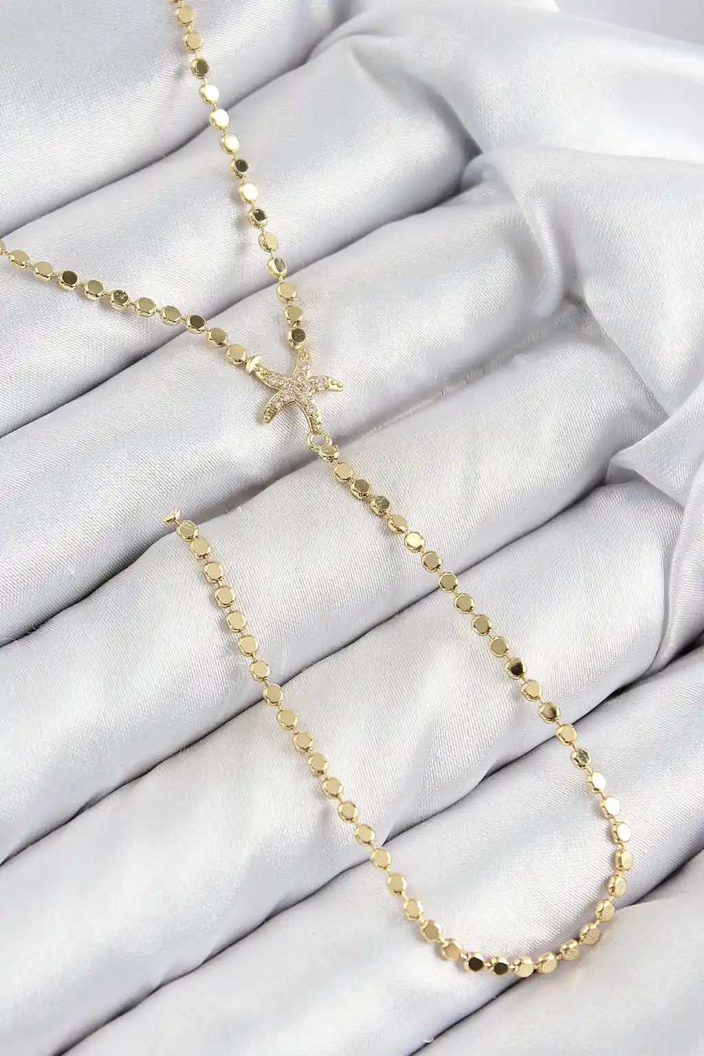 Pirinç Zirkon Taşlı Ezme Zincirli Deniz Yıldızı Model Gold Renk Y Kolye