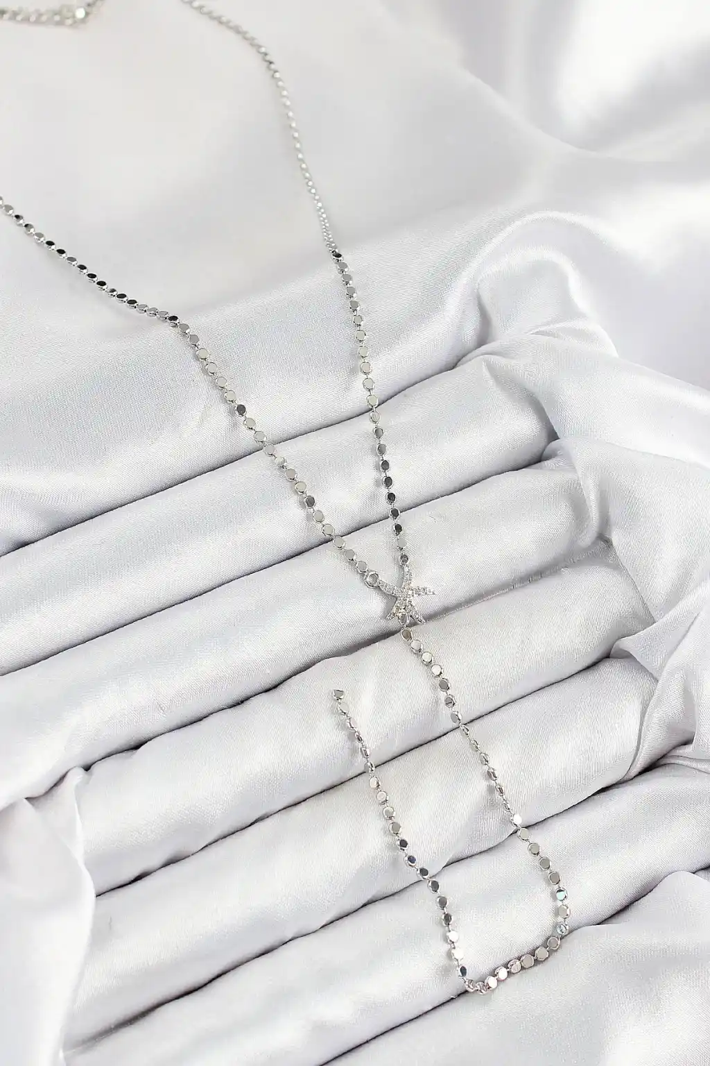 Pirinç Zirkon Taşlı Ezme Zincirli Deniz Yıldızı Model Gümüş Renk Y Kolye