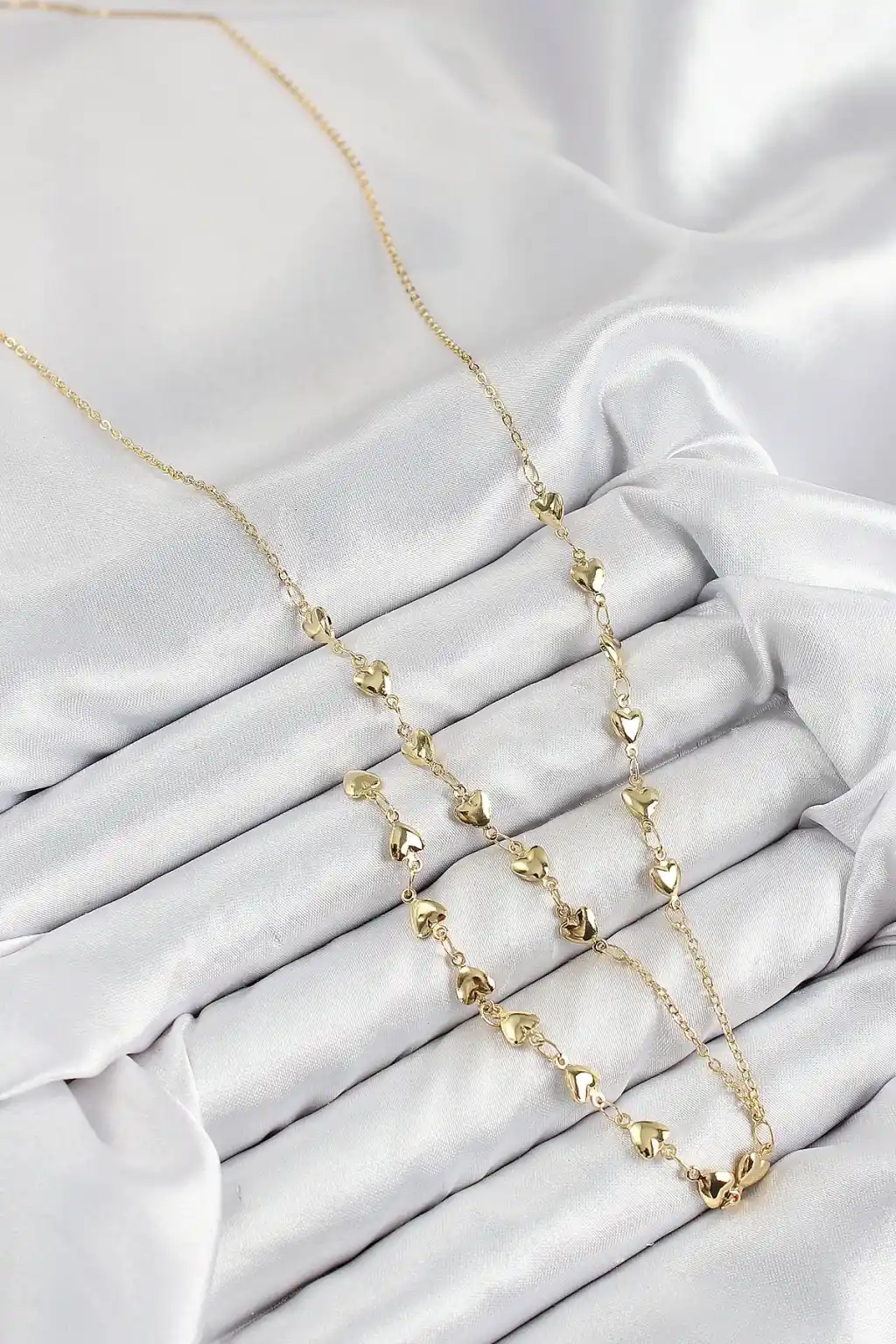 Pirinç Zirkon Taşlı Kalp Model Gold Renk Y Kolye