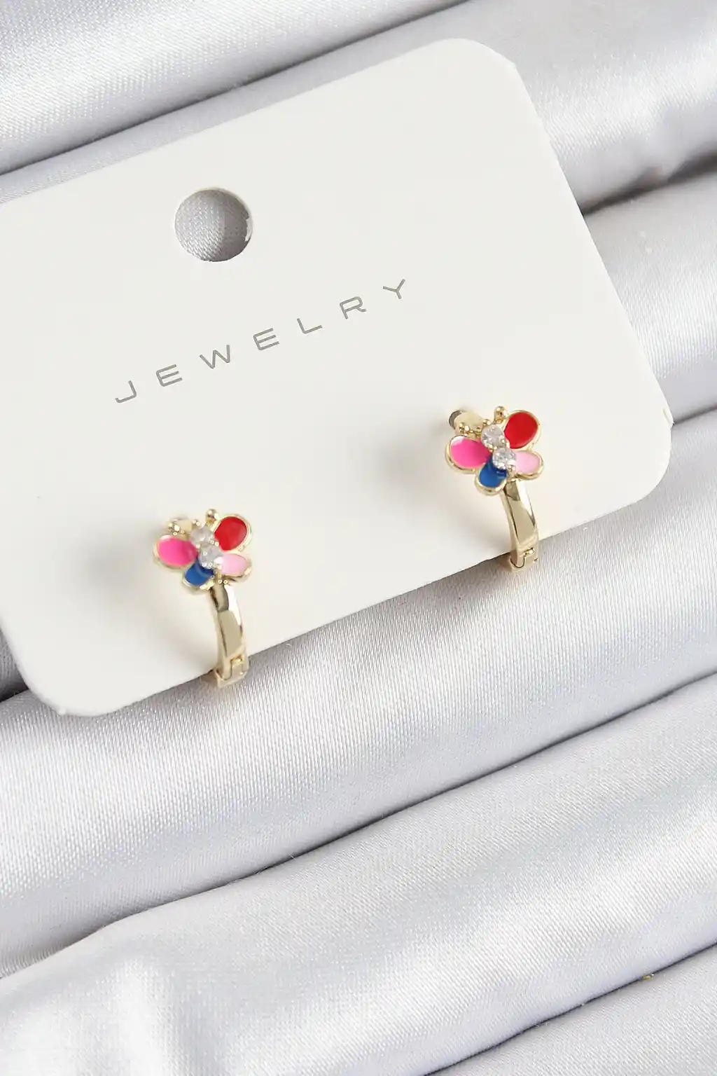 Pirinç Zirkon Taşlı Kelebek Model Gold Renk Çocuk Küpe