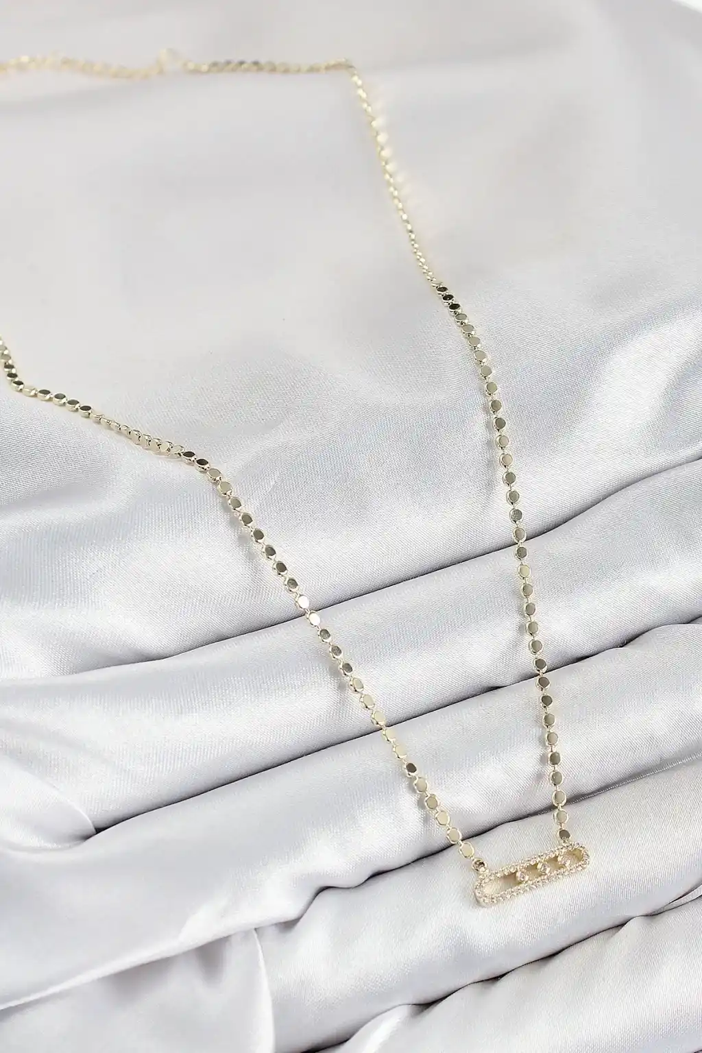 Pirinç Zirkon Taşlı Messika Model Ezme Zincir Gold Renk Kadın Kolye