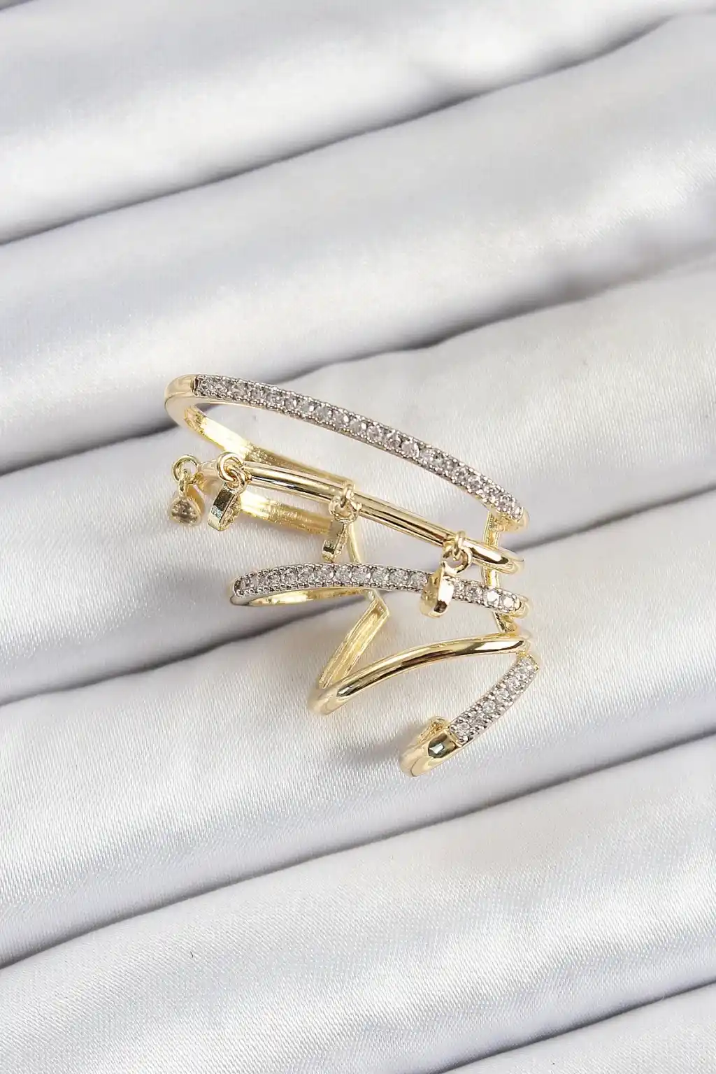 Pirinç Zirkon Taşlı Sıkıştırma Sağ Kıkırdak Gold Renk Kadın Küpe