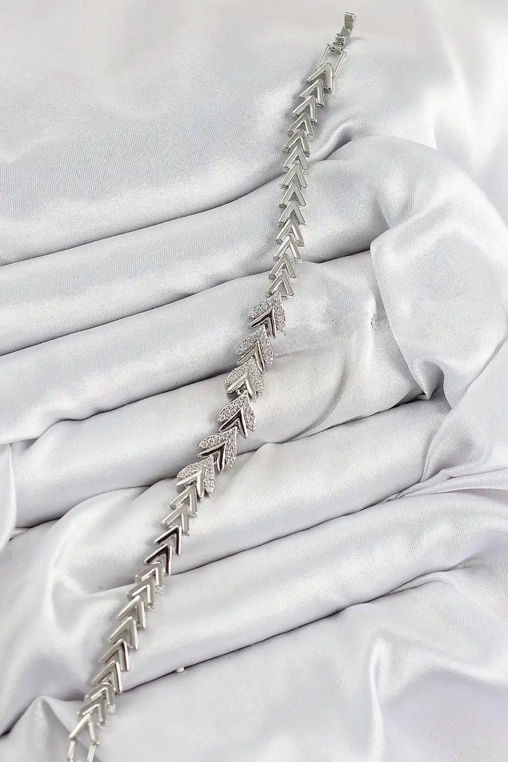 Pirinç Zirkon Taşlı Sıralı Ok Model Gümüş Renk Kadın Bileklik