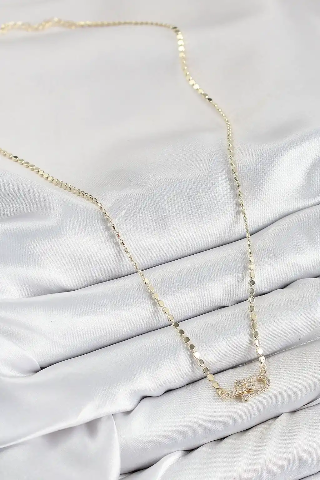 Pirinç Zirkon Taşlı Tifany Model Ezme Zincir Gold Renk Kadın Kolye