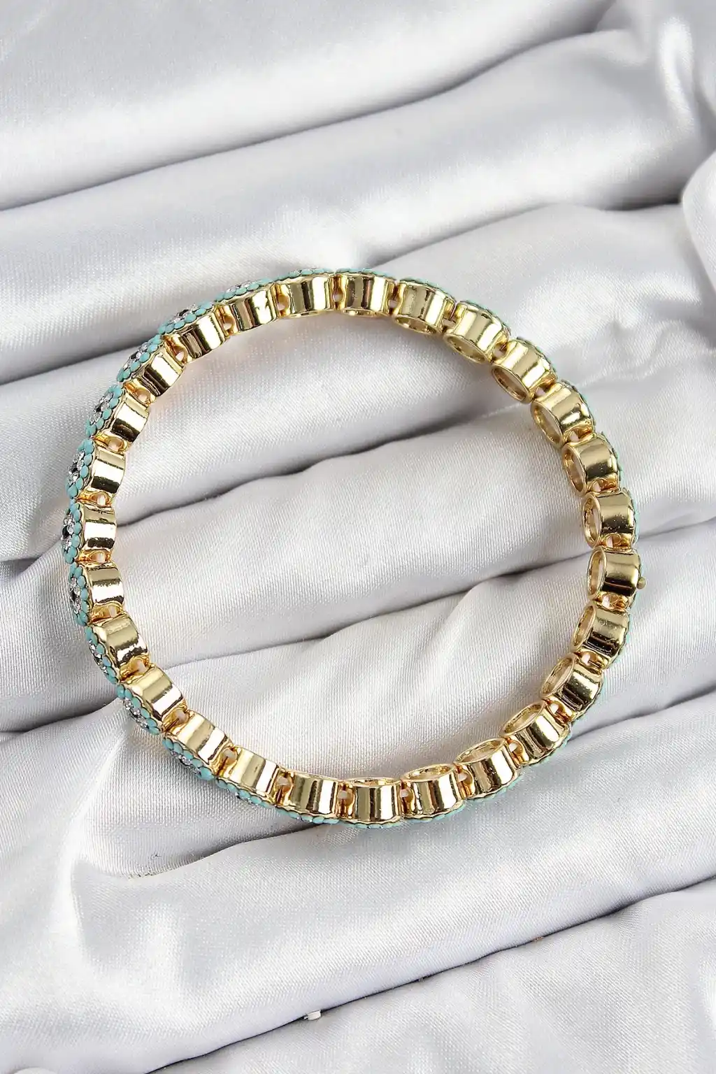 Pirinç Zirkon Taşlı Turkuaz Nazar Model Gold Renk Lastikli Kadın Bileklik