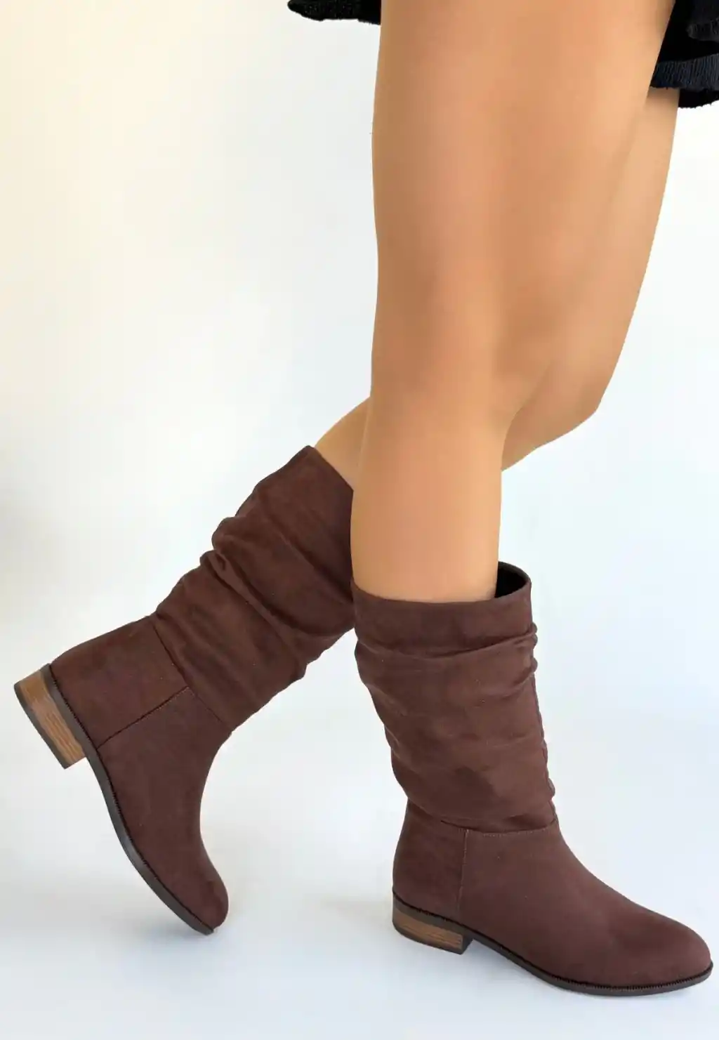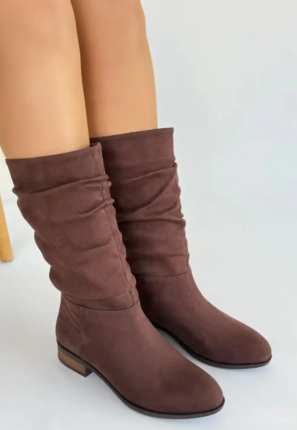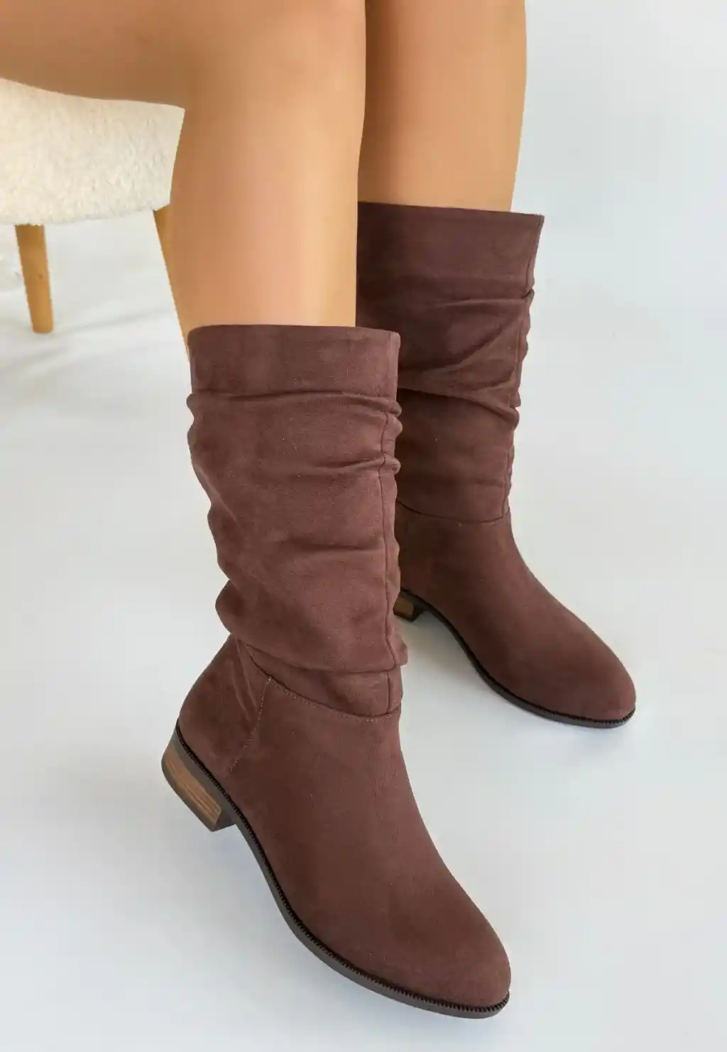 Canty Kahverengi Süet Körüklü Topuklu Çizme