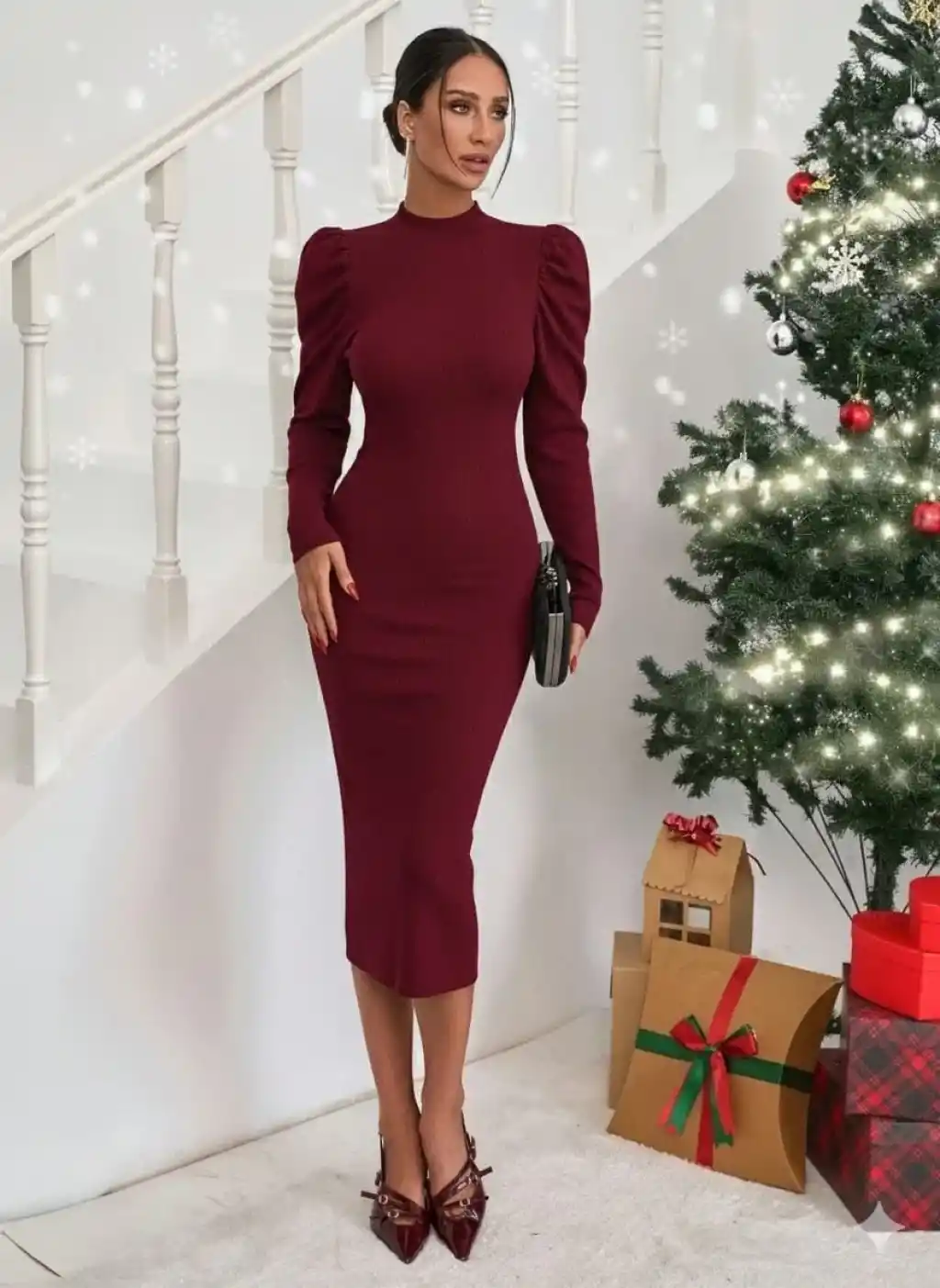 Prenses kol kaşkorse elbise bordo a3691, feminen ve zarif bir görünüm sunar.